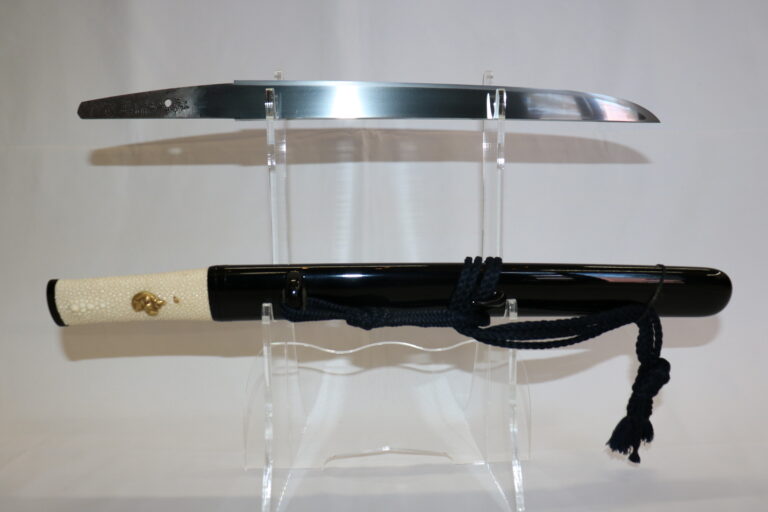 無銘の江戸時代後期頃作られた短刀です。 拵えは金具類を鼈甲一式で誂えた最高級品の拵えです。鞘は絹の端 […] -